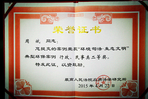 4月22日,由最高人民法院应用法学研究所主持召开的“全国环境司法与生态文明典型环保案例颁奖暨研讨会”在河南开封隆重召开。我院周斌同志撰写的《长阳珍珠果业诉长阳住房和城乡建设局、市容环境卫生管理局、清江环卫公司环境污染赔偿纠纷一案》案例荣获二等奖,并受邀出席研讨会。